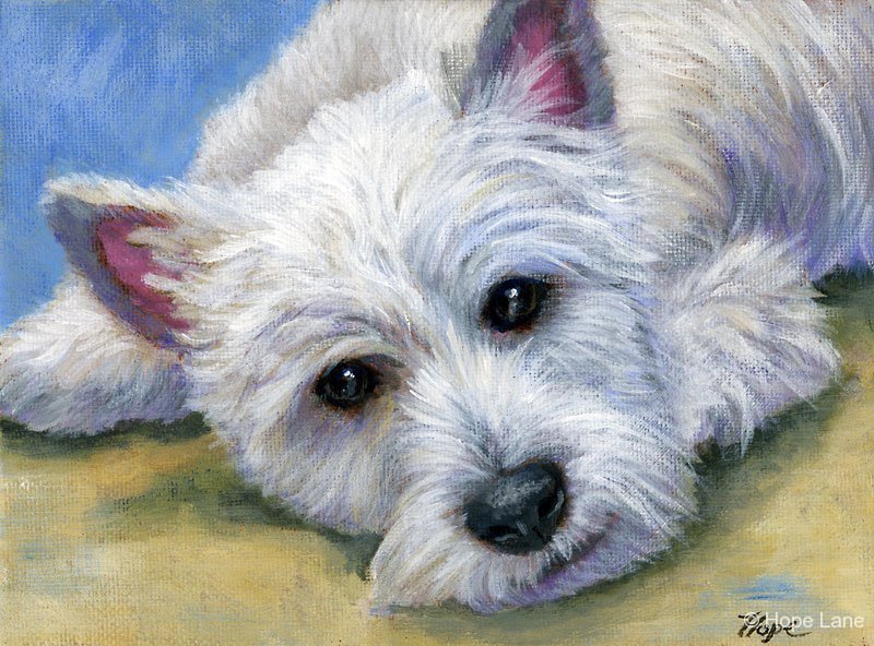 Waiting Westie, Westhighland White Terrier Painting by Hope Lane