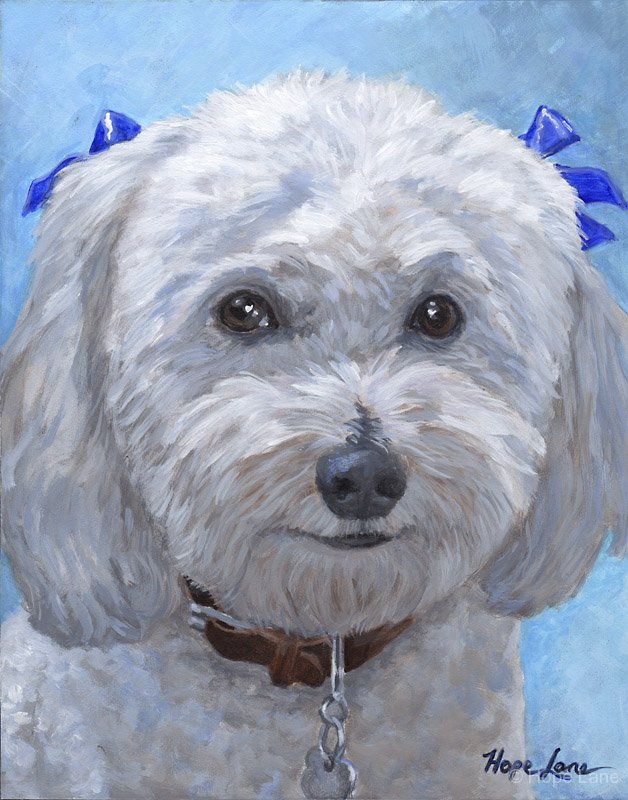 Chuckie, custom pet portrait of Bichon Frise by Hope Lane