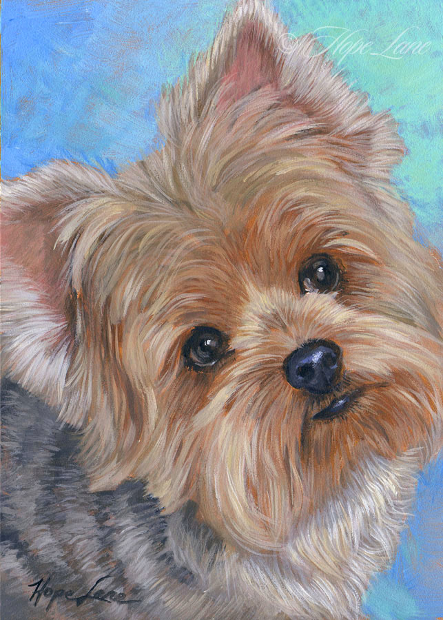 Mel the Yorkshire Terrier custom pet portrait painting by Hope Lane