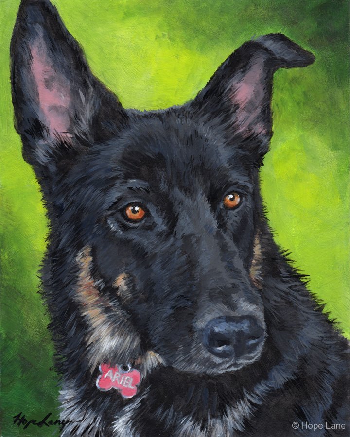 Ariel, German Shepherd custom pet portrait by Hope Lane