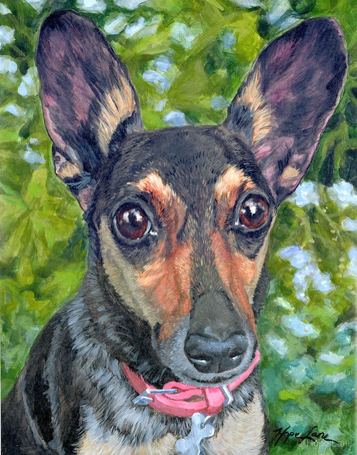 Coppelia, custom pet portrait of Rescue by Hope Lane