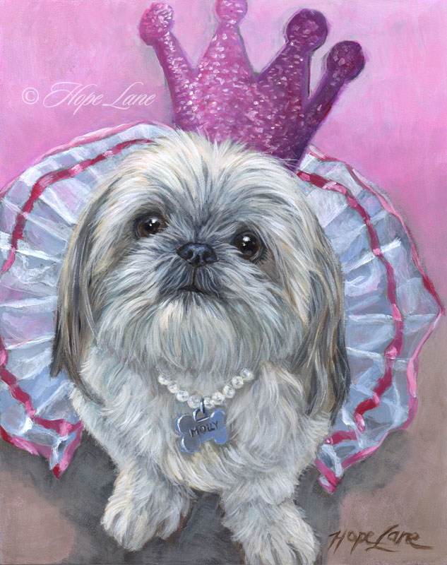 Molly, , custom pet portrait of a Shih Tzu Princess by Hope Lane